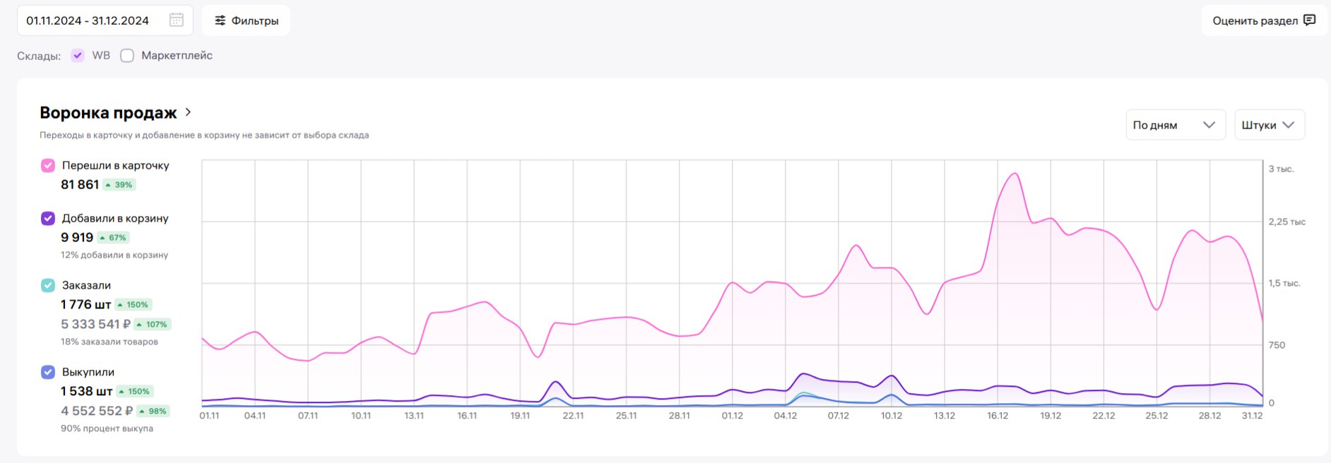 Подготовиться к пику ноябрь–декабрь, поднять заказы и выкуп